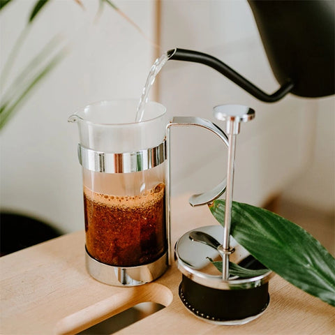 - Namletou kávu ve french pressu zalijte horkou vodou a pořádně promíchejte.