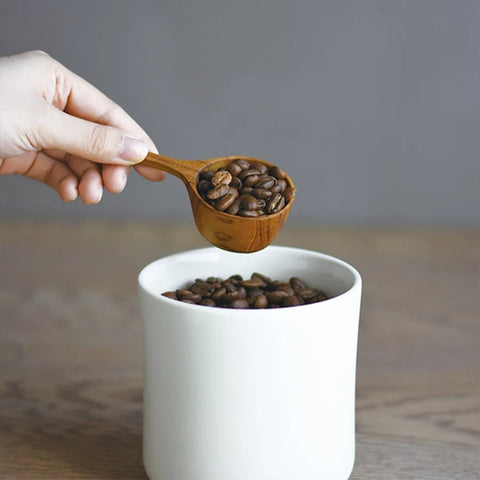 Odměrná lžíce od japonské firmy Kinto. Mohou se objevit malé rozdíly v jednotlivých kusech produktu z důvodu ruční výroby, například přirozené rozdíly v textuře a barvě dřeva.