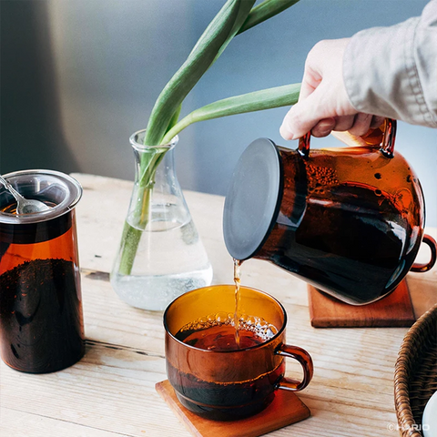 Elegantní 300ml hrnek z jantarového skla od Hario. S praktickým ouškem a stohovatelným designem pro úsporu místa.