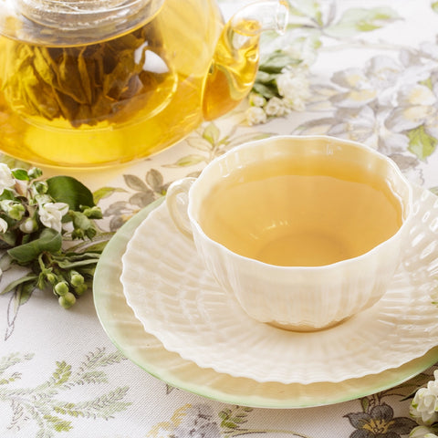 Ochucování čaje jasmínovými květy je stará čínská tradice. Základem tohoto čaje je čaj Pouchong, který je o trochu více hnědý než zelené čaje. Přidávají se do něj čerstvé květy jasmínu, čímž vzniká delikátní a voňavý nápoj. Náš jasmínový čaj je košer a obsahuje kofein.