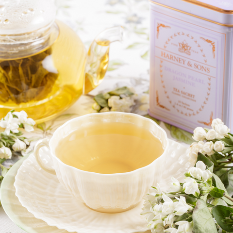 Jasmínový čaj Dragon Pearl, pocházející z čínského Fuanu, se skládá z malých, ručně srolovaných zelených čajových "perel" jemně provoněných květinovými esencemi z jasmínových květů. Má svěží jemné a květinové aroma, díky kterému je pití čaje nádherným zážitkem.