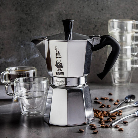 Ikonický moka kávovar Bialetti Moka Express připraví až 6 šálků espressa (cca 185 ml). Vyroben z kvalitního litého hliníku, v klasickém designu, který dodá vaší kuchyni styl a italský šarm.